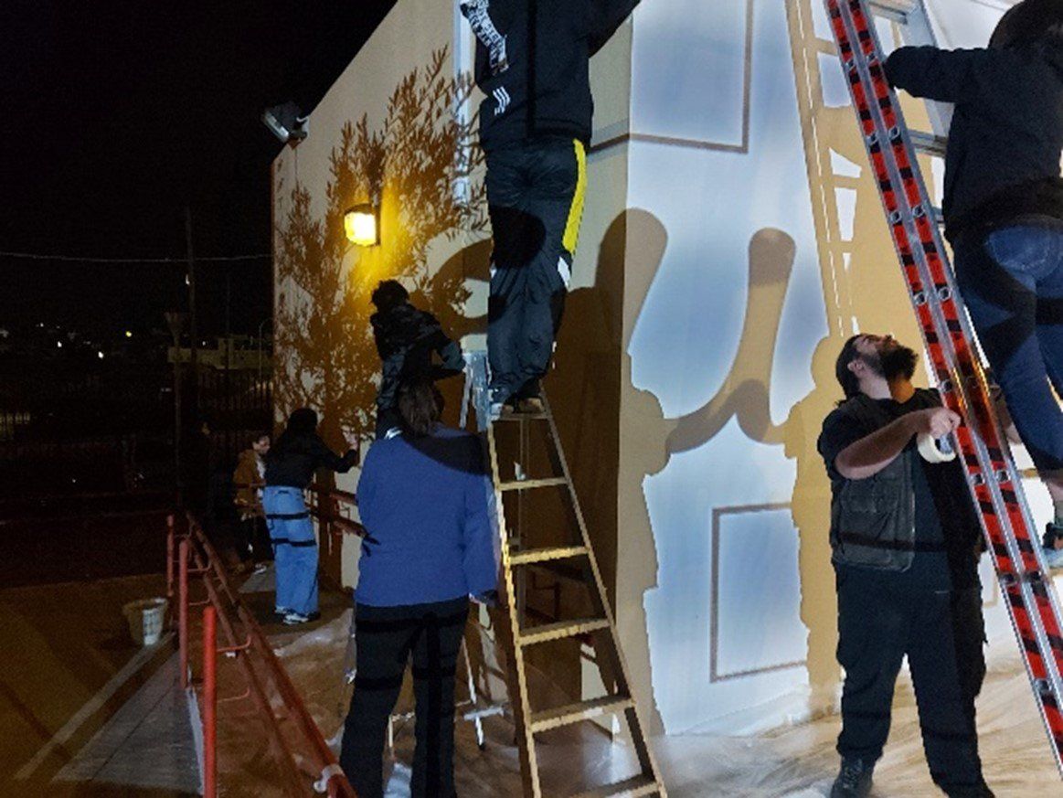 The whole idea was to establish the word <us> (Emeis-Eμείς) on the wall and then the young students could insert drawings or other material they found appropriate that was expressing themselves. The whole experience was fun but also very interactive and creative.